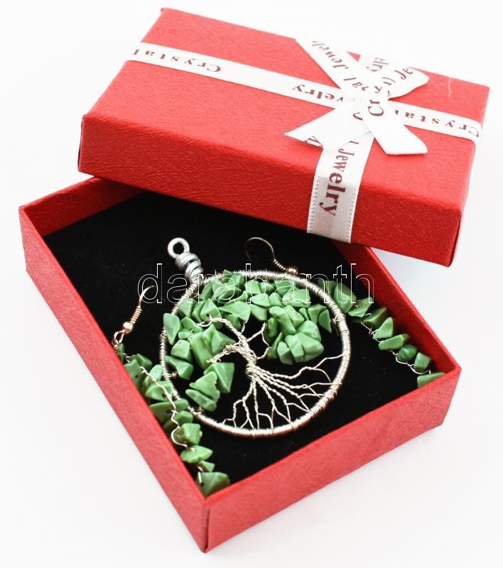 Achát szerencsemedál d: 4,5 cm + fülbevaló pár dobozban