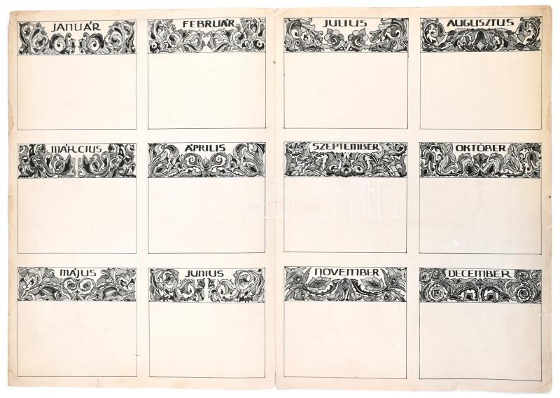 1925 Tussal rajzolt naptár mappa, lap alján és szélén részben ragasztott szakadásokkal, lap szélén kisebb foltokkal