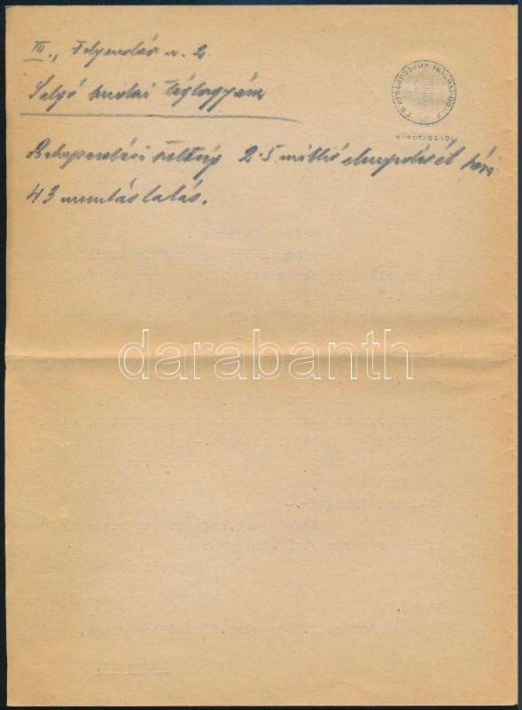 1945 Bp., Pekáry Dezső a Salgótarjáni Kőszénbányák Rt. és a hozzá tart... https://www.darabanth.com/en/386-Online-auction/386.0/Art-and-other-collectibles/Historical-documents-manuscripts~500019/1945-Bp-Pekary-Dezso-a-Salgotarjani-Koszenbanyak-Rt-es-a-hozza-tartozo-Budai-TeglagyC3~II2311931