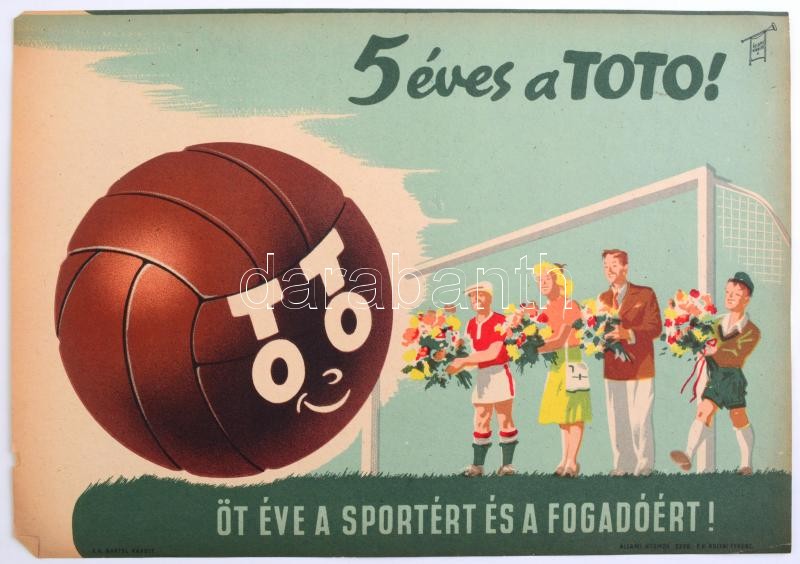 https://www.darabanth.com/en/386-Online-auction/386.0/Art-and-other-collectibles/Posters~500032/Villamosplakat-5-eves-a-Toto-5-eve-a-sportert-es-a-fogadoert-focipalya-33-5x24-cm~II2312128
