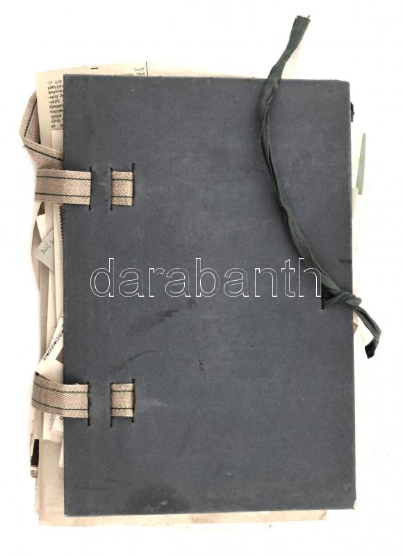 Vegyes papírrégiség tétel, közte illusztrációk, nagyrészt újságkivágások, Surányi Miklós íróra vonatkozó cikkek, nyomtatványok...stb.