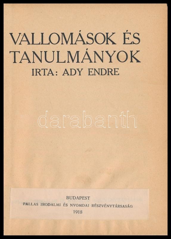 Ady Endre: Vallomások és tanulmányok. Bp., 1918, Nyugat,(Világosság-ny... https://www.darabanth.com/en/386-Online-auction/386.0/Books/Books-Other-rarities~1000019/Ady-Endre-Vallomasok-es-tanulmanyok-Bp-1918-Nyugat-Vilagossag-ny-101-pplus3-p-A-boritC3~II2308293