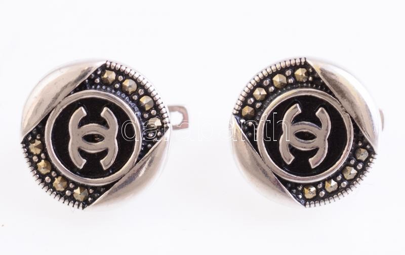 Ezüst(Ag) "Chanel" mintás fülbevalópár, jelzett, d: 1,5 cm, ...