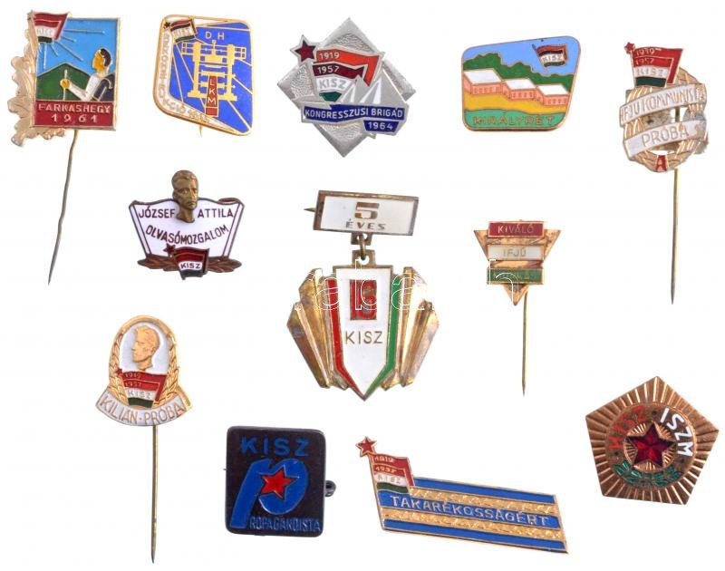 12db-os KISZ jelvény tétel, közte ritkább, érdekesebb darabok T:vegyes