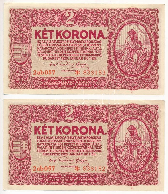 https://www.darabanth.com/en/386-Online-auction/386.0/Numismatics/Hungarian-Banknotes~2000007/1920-2K-2ab-2x-csillagos-sorszammal-sorszamkovetok-TI-II-hajtatlanok-kisebb-es-nagyobb~II2312046