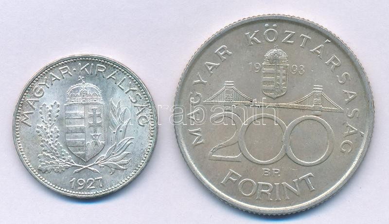 1927. 1P Ag + 1993. 200Ft Ag "MNB" T:1-,2 Adamo P6, F13