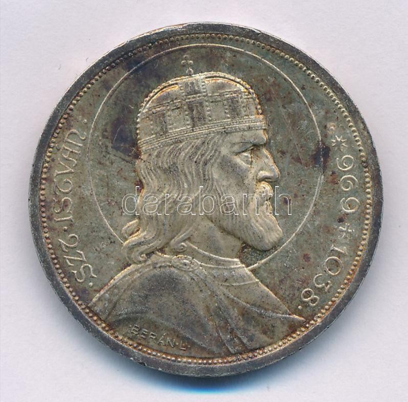 Hungary 1938. 5 Pengő Ag "Saint Stephen" C:XF patina, scratch