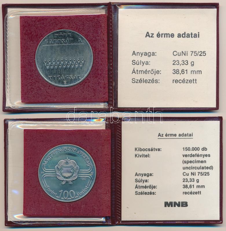 https://www.darabanth.com/en/386-Online-auction/386.0/Numismatics/Hungarian-coins-and-coins-with-Hungarian-mint-marks~2000008/1982-100Ft-Cu-Ni-Labdarugo-vilagbajnoksag-1982-plus-1983-100Ft-Cu-Ni-FAO-Tobb-gabonat-a-vi~II2307477