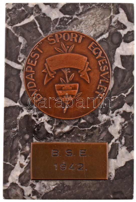 1933. "BUDAPEST SPORT EGYESÜLET" Br sportérem (40mm) fekete márványtalapzaton (61x90x19mm) T:2 márványon lepattanás