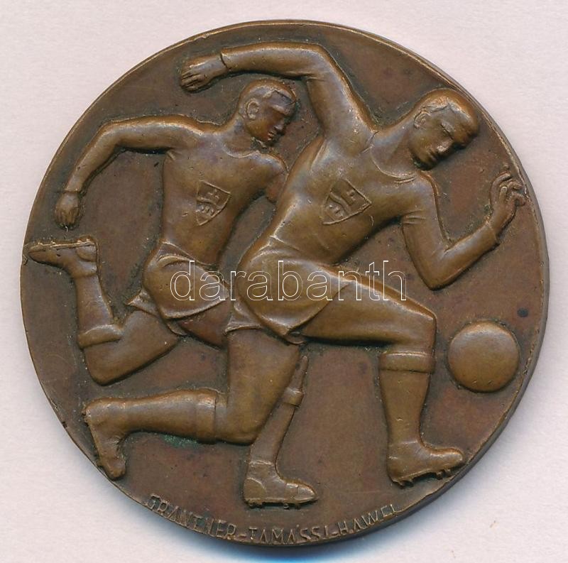 Description: 1942. "MLSZ (Magyar Labdarúgók Szövetsége) - Budapesti Kerület - III. oszt. 1941-42. I." kétoldalas labdarúgó sport Br díjérem. Szign: Grantner-Tamási-Hawel (40mm) T:1-
