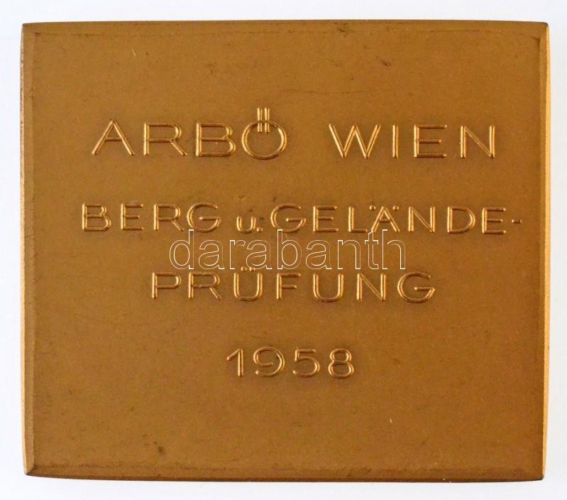 Ausztria 1958. "ARBÖ Wien Berg u. Gelände prüfung 1958" aranyozott Br motorsport plakett (56x48mm) T:1-