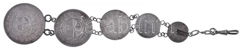Description: Dél-Afrika 1893. 3p Ag + 1895. 6p Ag + 1894. 1Sh Ag + 1892. 2Sh Ag + 1892. 2 1/2Sh Ag láncon egybefűzve T:2-,3