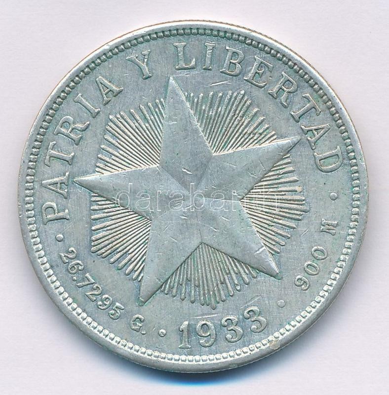Kuba 1933. 1P Ag T:2 ph., patina Cuba 1933. 1 Peso Ag C:XF edge error, patina Krause KM#15.2