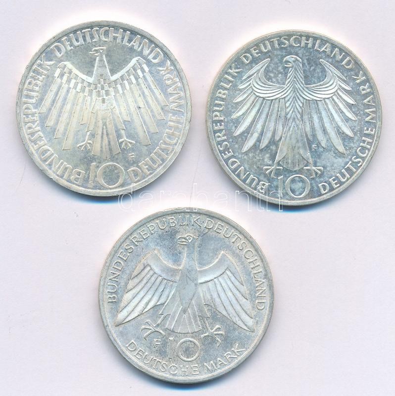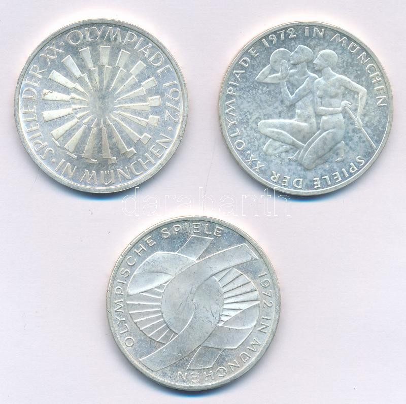 NSZK 1972F 10M Ag "Müncheni Olimpia - Csomó" + 10M Ag "Müncheni Olimpia - térdelő atléták" + 10M Ag "Müncheni Olimpia - Spirál" T:1- (eredetileg PP) patin