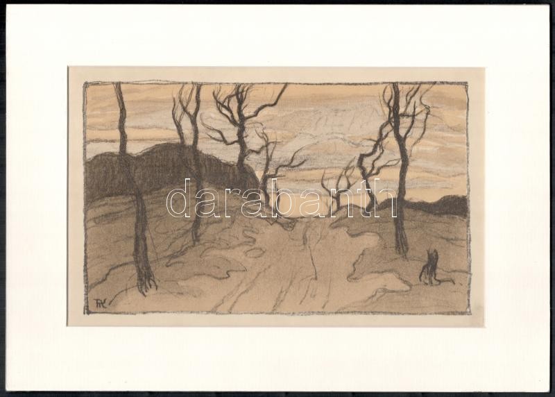 Kőrösfői Kriesch Aladár (1863-1920): Országúton (Naplemente), 1903 (1905). Színes litográfia, papír, jelzett a litográfián, paszpartuban, 15×25 cm