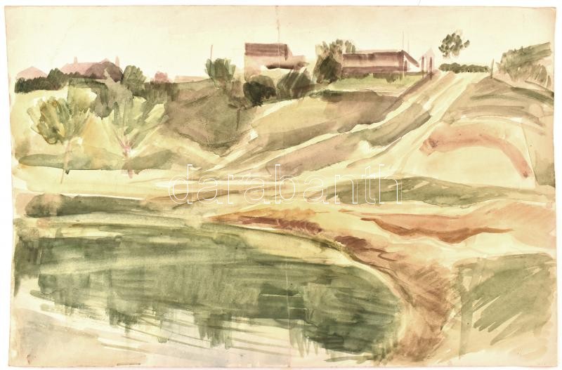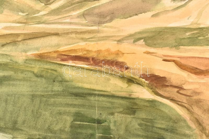 Udvary Pál (1900-1987): Dombos táj. Akvarell, papír. Hajtásnyommal. 31...