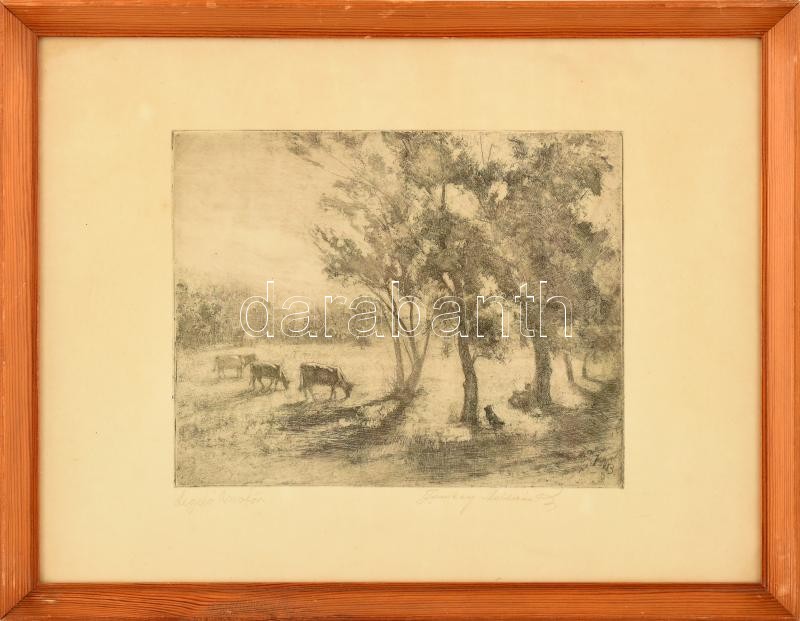 Zombory Moldován Béla (1885-1967): Legelő Aszófőn. Rézkarc, papír, jel...