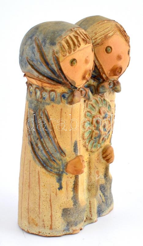 Kiss Roóz Ilona (1920-2010): Éneklő pár, festett mázas kerámia, jelzet...