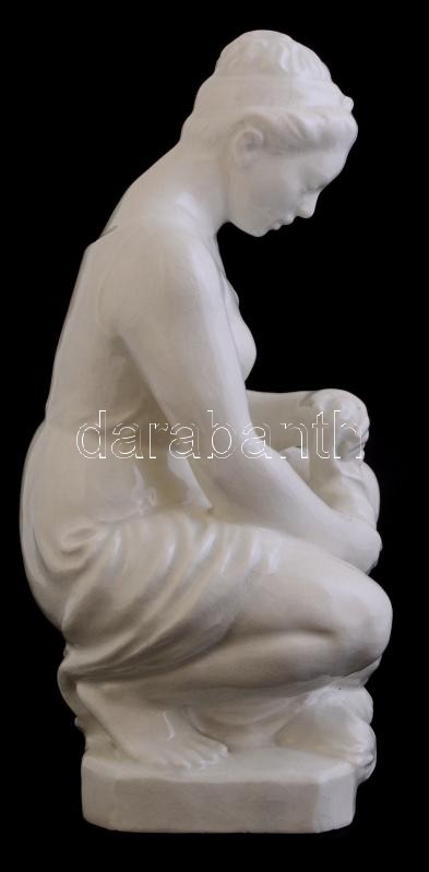 Mosónő, fehér mázas porcelán szobor, Kákonyi jelzéssel, máza alatti re...