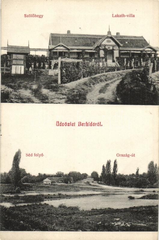 1912 Berhida, Szőlőhegy, Lakath villa, Séd folyó, Országút