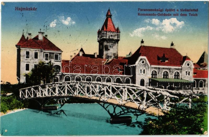 1917 Hajmáskér, Parancsnoksági épület és tó, híd (apró lyukak / tiny p...