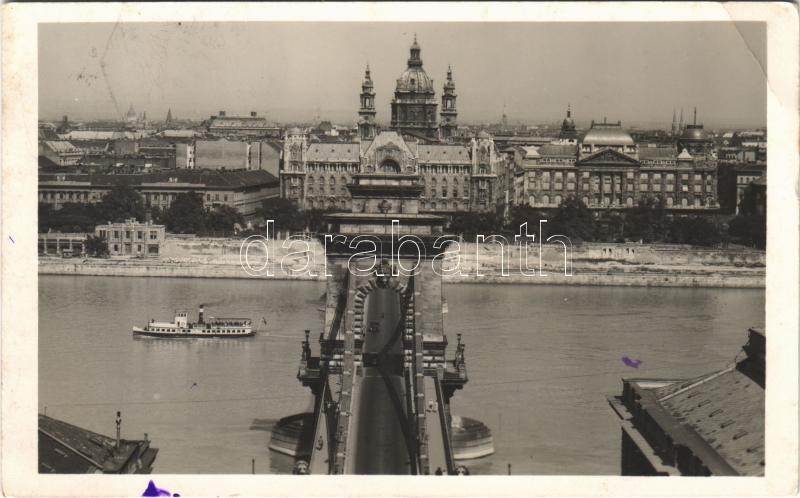 1941 Budapest, Lánchíd, gőzhajó, automobil, Bazilika (EB)