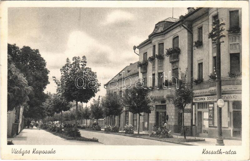 1942 Kaposvár, Virágos város, Kossuth utca, húscsarnok, dohány szivar ...