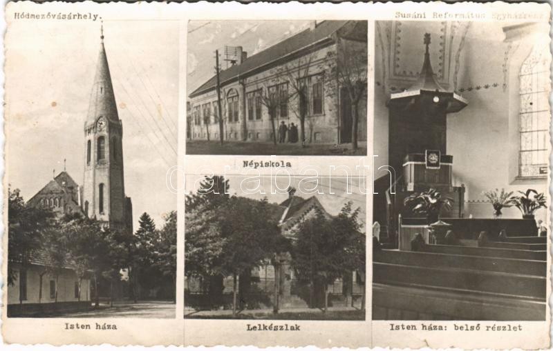 1946 Hódmezővásárhely, Isten háza, belső, népiskola, lelkészlak. photo + inflációs díjjegyes bélyegek