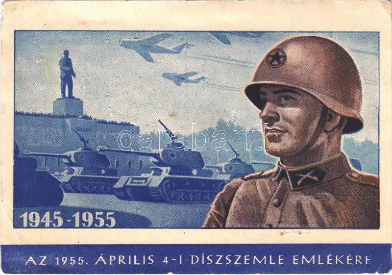 1955 Április 4-i díszszemle emlékére; Vörös Hadsereg katonai propagand... https://www.darabanth.com/en/386-Online-auction/386.0/Postcards/Militaria~1500091/1955-Aprilis-4-i-diszszemle-emlekere-Voros-Hadsereg-katonai-propaganda-Sztalin-szobor-harc~II2312713