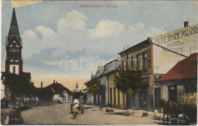 1919 Marosludas, Ludosul de Mures, Ludus; Fő utca, templom, Sternberg ... https://www.darabanth.com/en/386-Online-auction/386.0/Postcards/Transylvania~1500006/1919-Marosludas-Ludosul-de-Mures-Ludus-Fo-utca-templom-Sternberg-Izidor-fuszer-es-vas-uzlet~II2310448