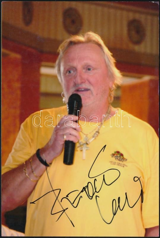 Benkő László (1943-) zenész aláírása az őt ábrázoló fotón
