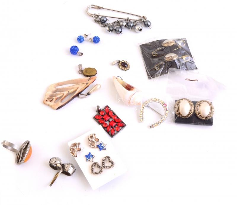 Vegyes bizsu tétel, fülbevalók, gyűrűk, brossok