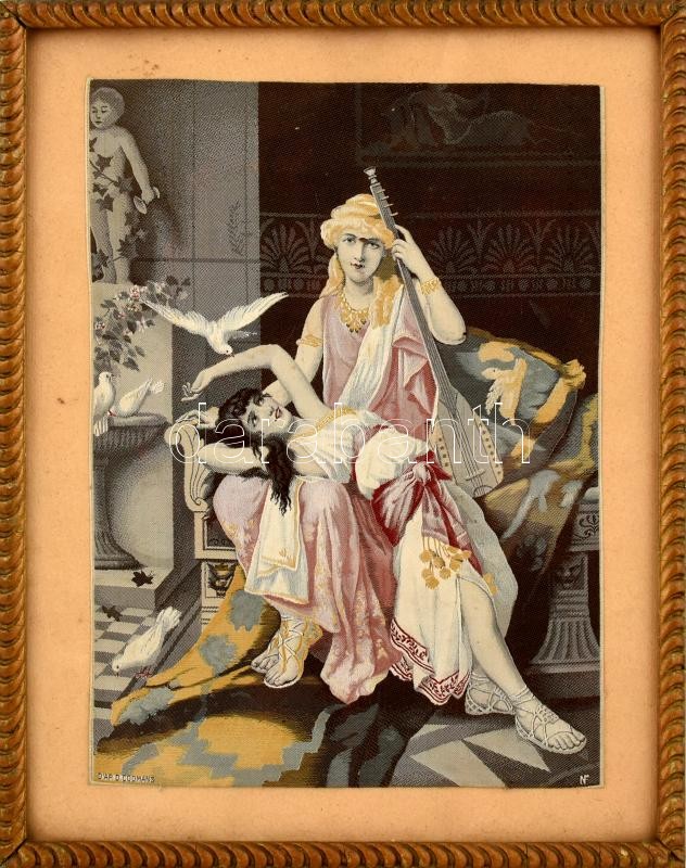 Üvegezett, régi fa keretben kissé erotikus selyemkép. Belső méret: 31,...