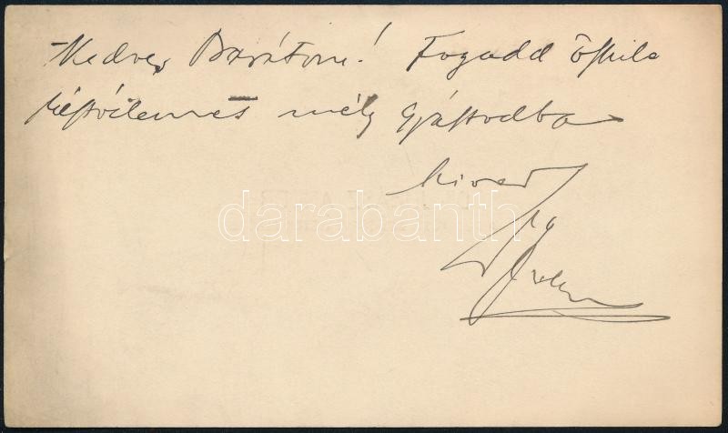 Juhász Andor (1864-1941) a kir. törvényszék elnökének autográf sorai és aláírása névjegykártyáján