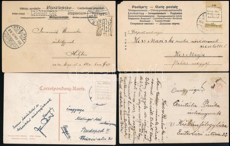 cca 1900 4 db régi képeslap, melyről a bélyegeket lemarták az alattuk lévő üzenet miatt
