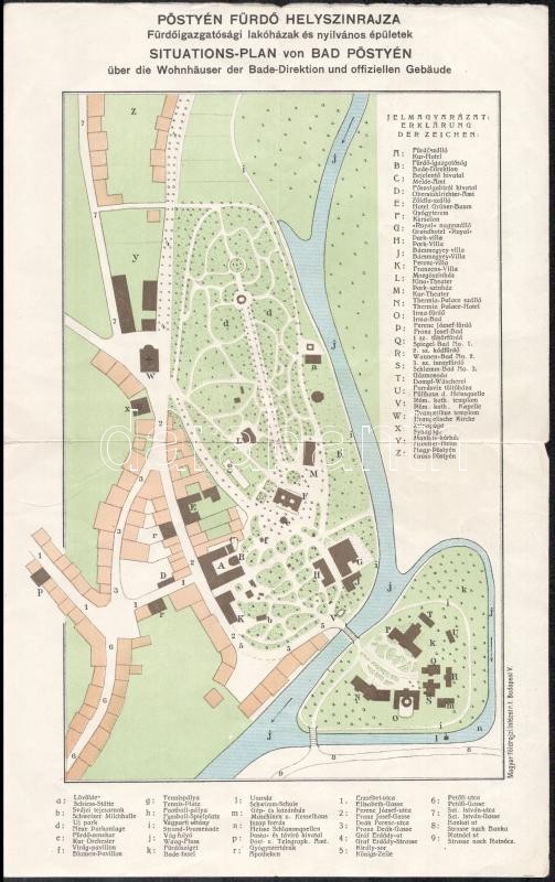 Pöstyén-fürdő helyszínrajza és környékének térképe, szakadással, 23x16...