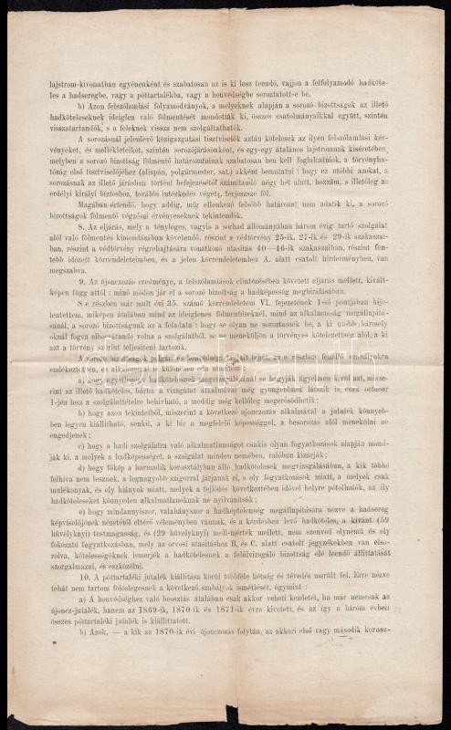 1871 Buda, magyar királyi honvédelmi miniszter által kiadott újoncállí...