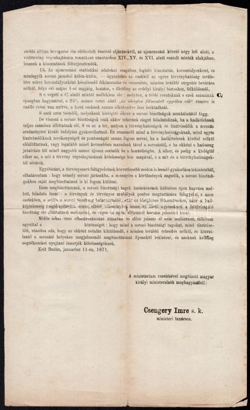 1871 Buda, magyar királyi honvédelmi miniszter által kiadott újoncállítási rendelet