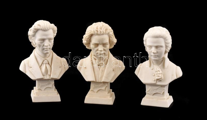 Mozart, Chopin, Beethoven büsztök, 3 db alabástrom, jelzettek (A. Gian...