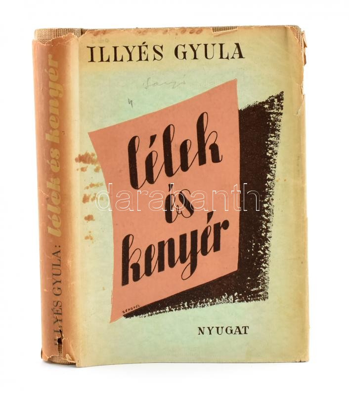 Illyés Gyula: Lélek és kenyér. Kozmutza Flóra értelmességi-, és ösztön-vizsgálataival. Bp.,(1939), Nyugat, 262+1 p. ElsÅ‘ kiadás. Kiadói egészvászon-kötés, kiadói szakadt, kissé hiányos illusztrált papÃr védÅ‘borÃtóban.