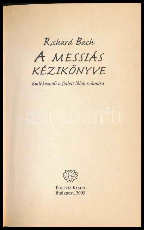 Richard Bach: A messiás kézikönyve. Emlékeztető a fejlett lélek számára. Bp., 2005, Édesvíz. Kiadói papírkötés.