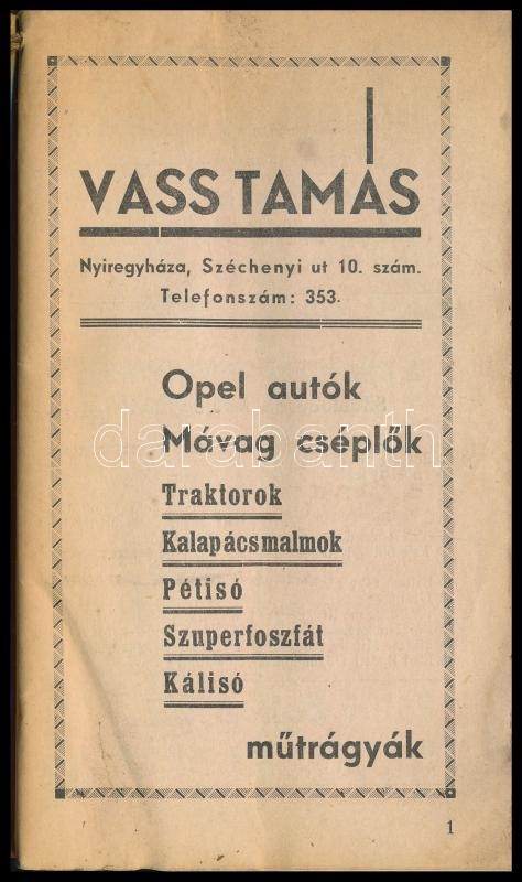 1941 Nyírvidék. Szabolcsi Hírlap 1941. évi Nyíregyházi Telefonkönyve. ... https://www.darabanth.com/en/387-Online-auction/387.0/Books/Books-Travelling-Local-History~1000001/1941-Nyirvidek-Szabolcsi-Hirlap-1941-evi-Nyiregyhazi-Telefonkonyve-Nyiregyhaza-1941-Or~II2318354