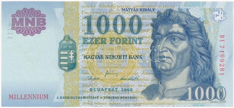 2000. 1000Ft "DE" "Millennium" T:I Adamo F55B2