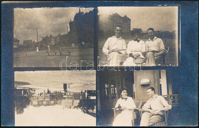 cca 1910 Széll Kálmán tér teniszpálya BTE, teniszezők 4 képet ábrázoló...