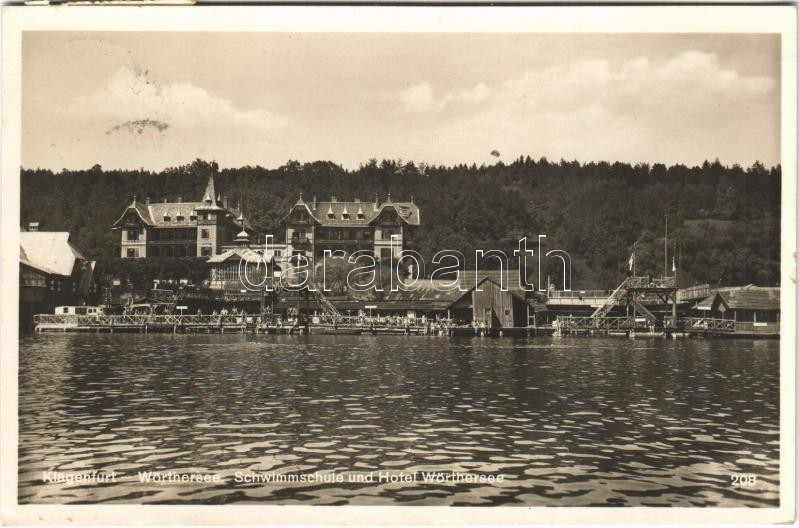 1931 Klagenfurt am Wörthersee (Kärnten), Schwimmschule und Hotel Wörth...