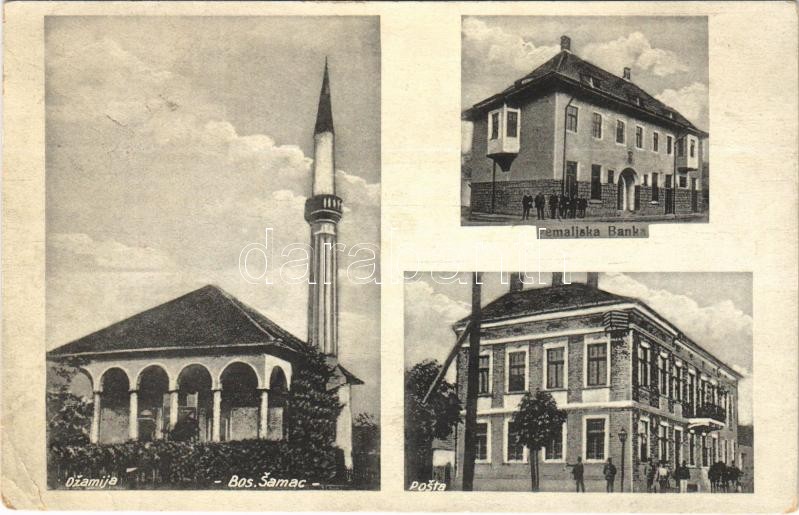 Samac, Bosanski Šamac; dzamija, posta, zemaljska banka / mosque, post ...