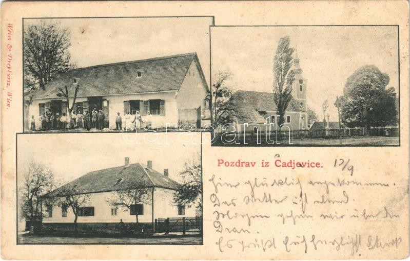1901 Cadavica, Cadjevice, Csagavica, Zagiotschau; templom, üzlet. Weis...