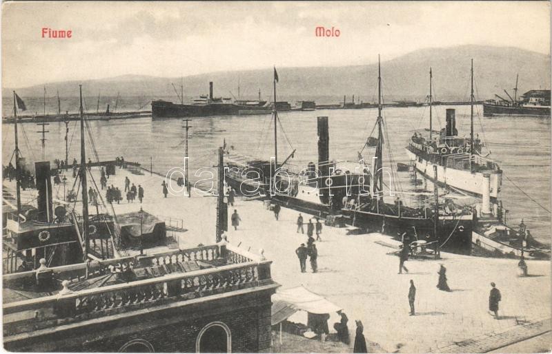 Fiume, Rijeka; Molo / port, steamships, market vendors. Giacomo M. Koh...