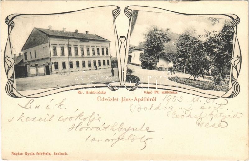1903 Jászapáti, Jász-Apáthi; Kir. Járásbíróság, Vágó Pál festőművész s...