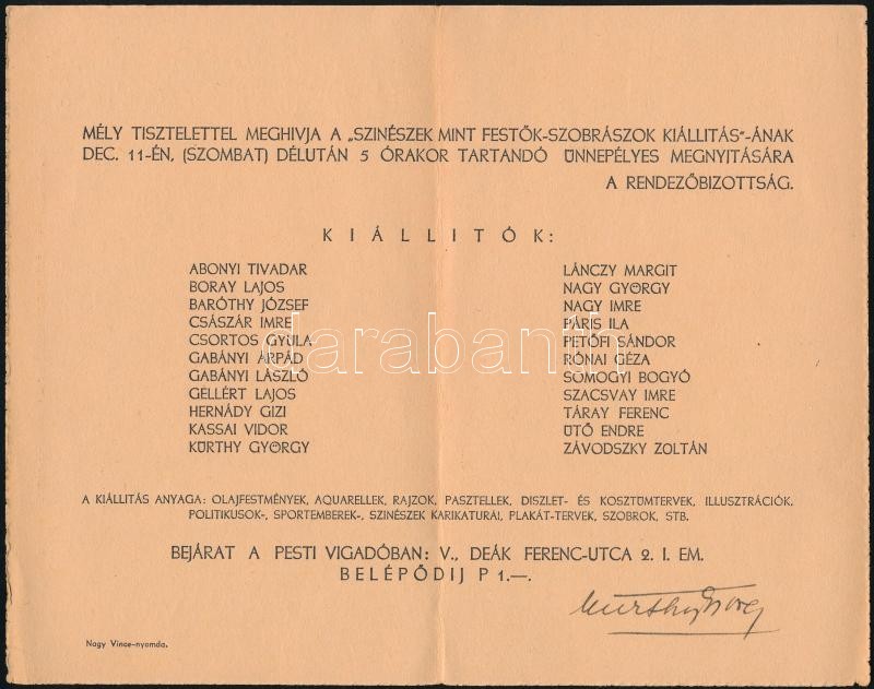 https://www.darabanth.com/en/388-Online-auction/388.0/Art-and-other-collectibles/Autographs~500020/1937-Szineszek-mint-festok-szobraszok-c-kiallitas-meghivoja-rajta-Kurthy-Gyorgy-1882-~II2326182